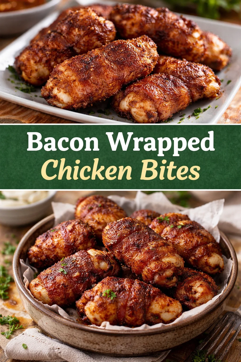 Imagine a crisp tablecloth and friends gathered; these Bacon Wrapped Chicken Bites pop with personality alongside: