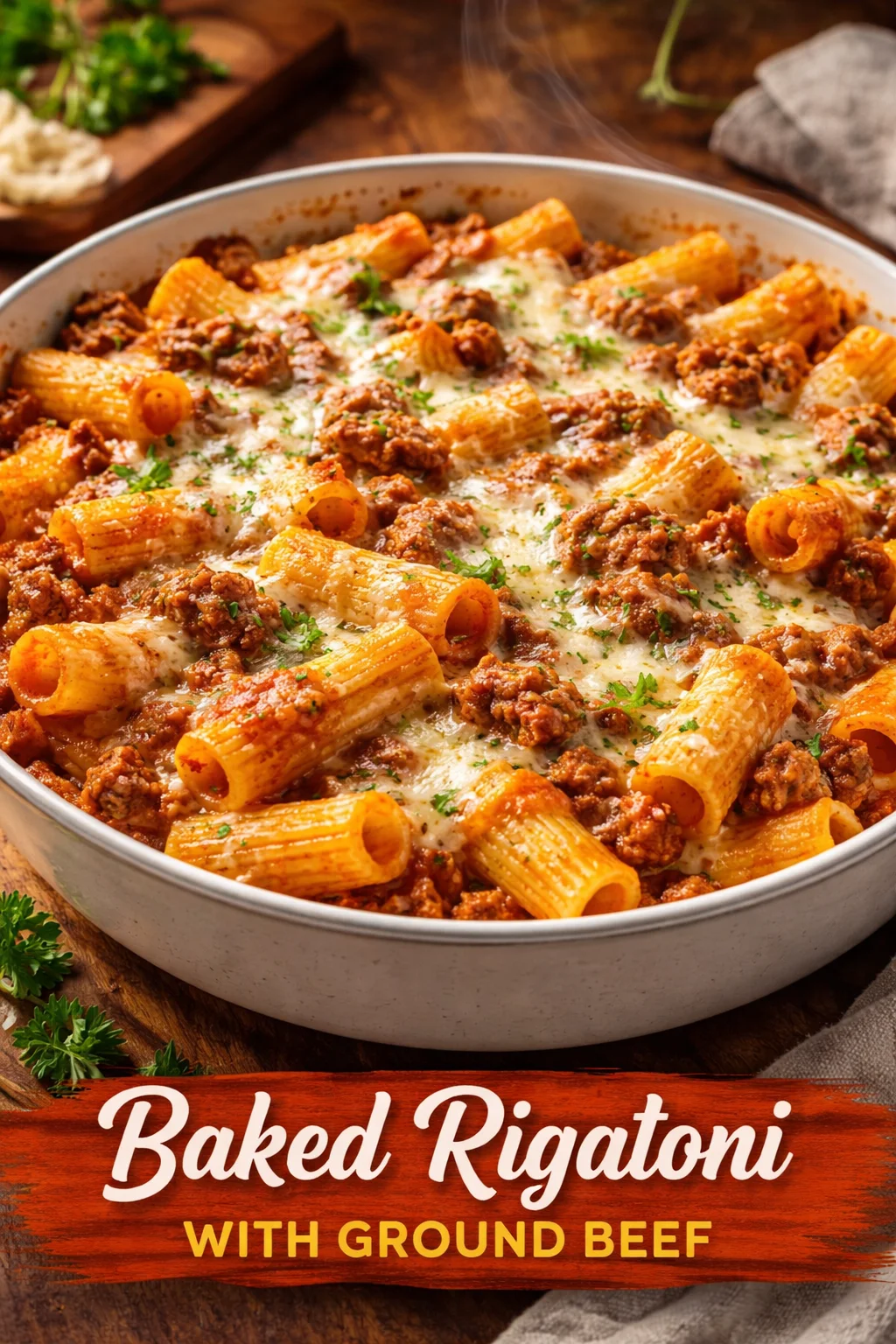 Baked Rigatoni with Ground Beef: A Cozy, Cheesy Hug from the Oven