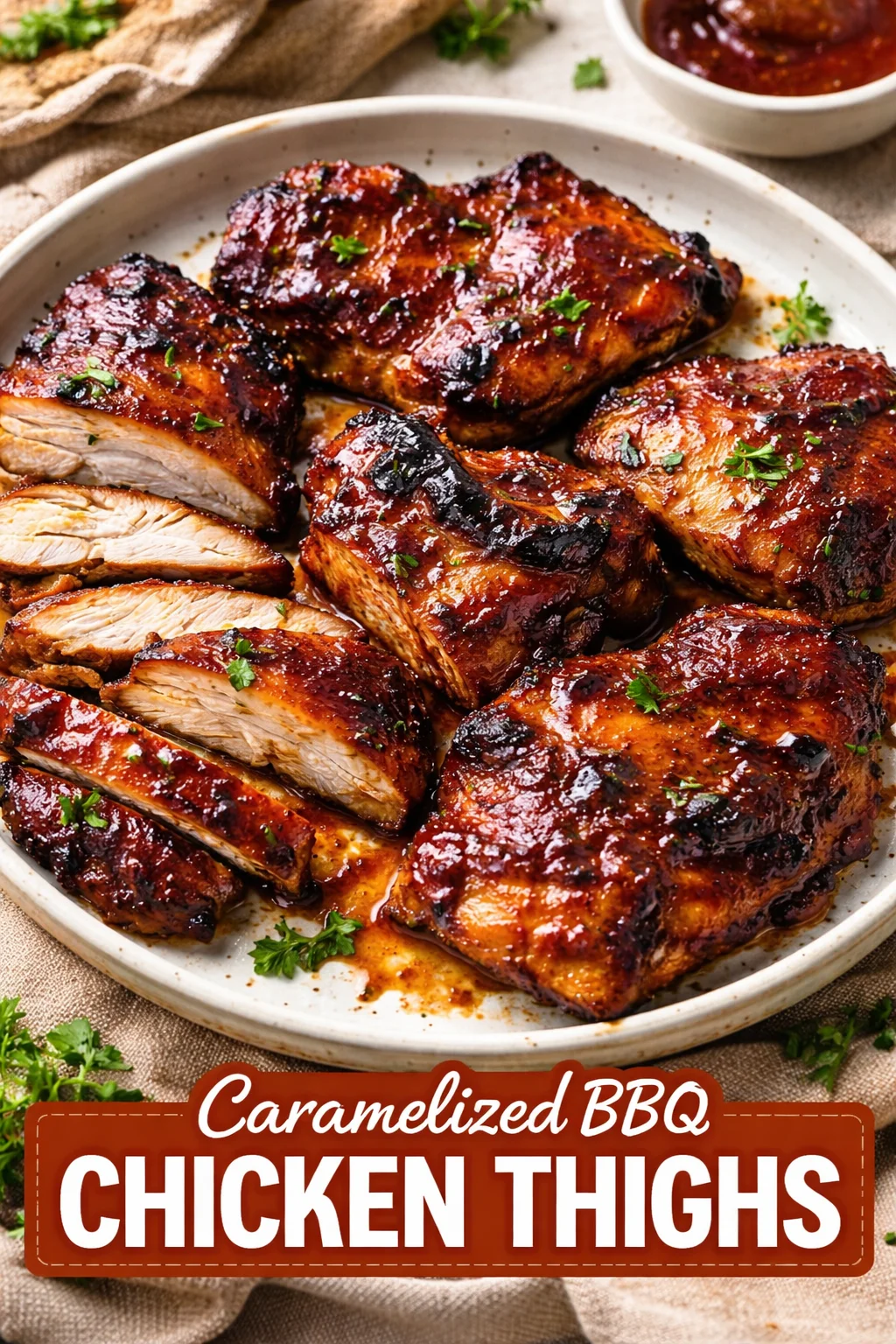 Caramelized BBQ Chicken Thighs in the Oven — A Sticky, Sweet, Soul-Warming Weeknight Dinner