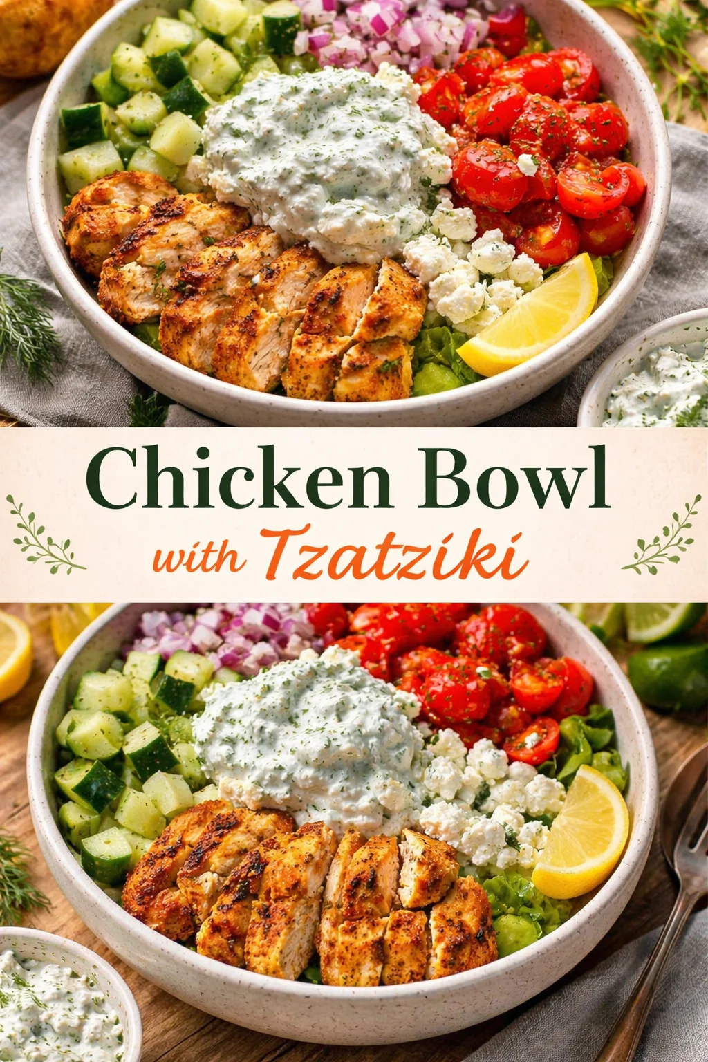 Imagine serving your gorgeous Chicken Bowl with Tzatziki alongside warm, fluffy pita bread and a light salad dressed with olive oil and balsamic vinegar. Pair it with a crisp white wine or a refreshing sparkling water infused with mint and lime for a festive meal. This dish is perfect for gatherings, outdoor picnics, or even a cozy family night at home.