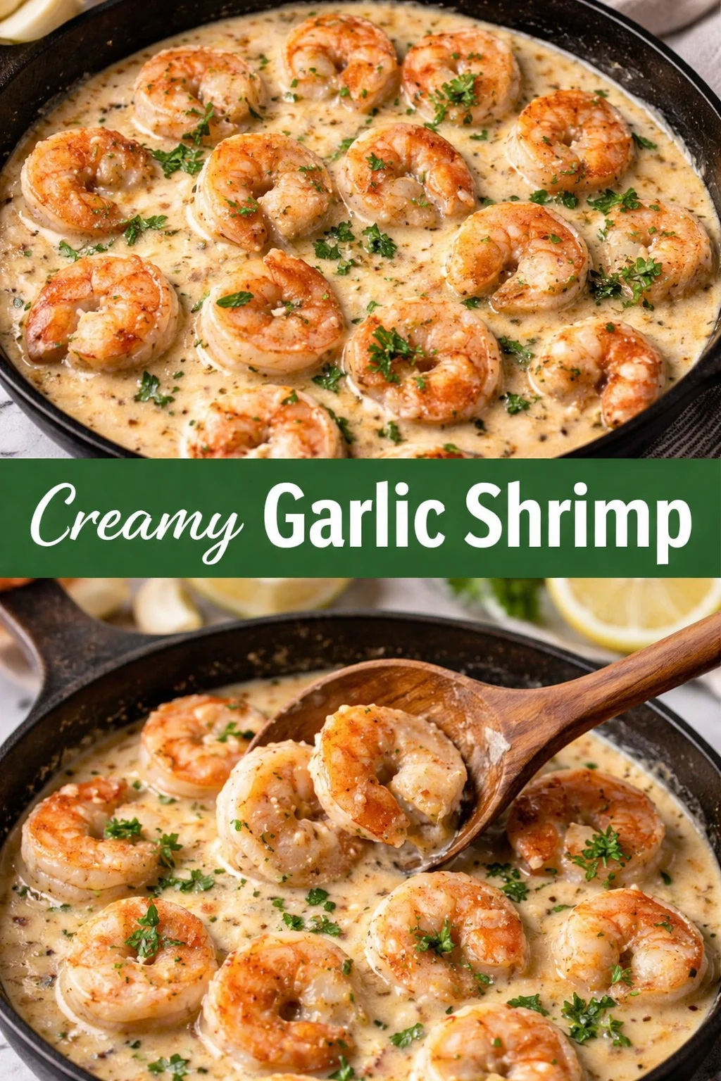 Serve this Creamy Garlic Shrimp piled on a tangle of linguine for a homey, indulgent dinner; spoon it over a bed of cauliflower rice for a healthy option; or plate it alongside crusty bread and a crisp salad for a simple, festive meal. Imagine a candlelit table, a glass of crisp white wine in hand, and the fork lifting a glossy, lemon-bright shrimp — this dish feels like celebration and comfort all at once.