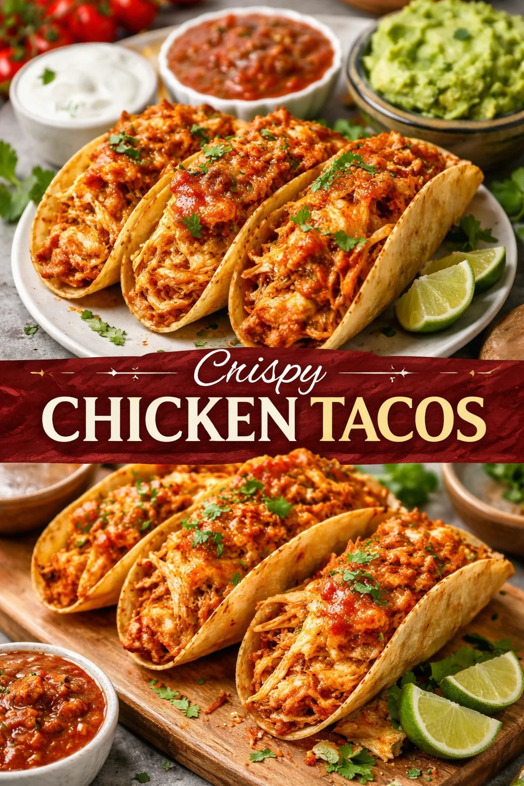 Delight your family with these crispy chicken tacos, filled with golden, tender chicken and vibrant toppings. Perfect for gatherings or quick weeknight dinners.