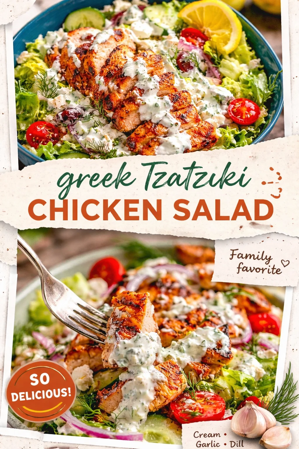 This Crispy Greek Tzatziki Chicken Salad is simple, soulful, and full of moments worth savoring. It’s the kind of recipe that turns busy nights into small celebrations and becomes a comforting food tradition in your rotation. Try it, make it your own with a twist or two, and then share it — because food tastes sweetest when it brings people together.