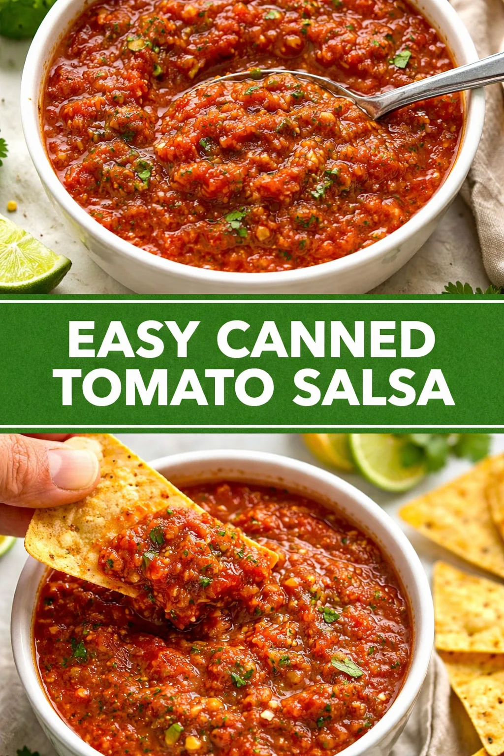 There’s a quiet joy in simple things done well — a warm batch of Easy Canned Tomato Salsa, a bowl set between friends, a shared moment of crunch and laughter. This recipe is a little pantry magic: quick enough for weeknights, charming enough for company, and honest enough to become part of your rotation. Make a batch, pass the chips around, and let the familiar, comforting flavors do what they do best — bring people together.