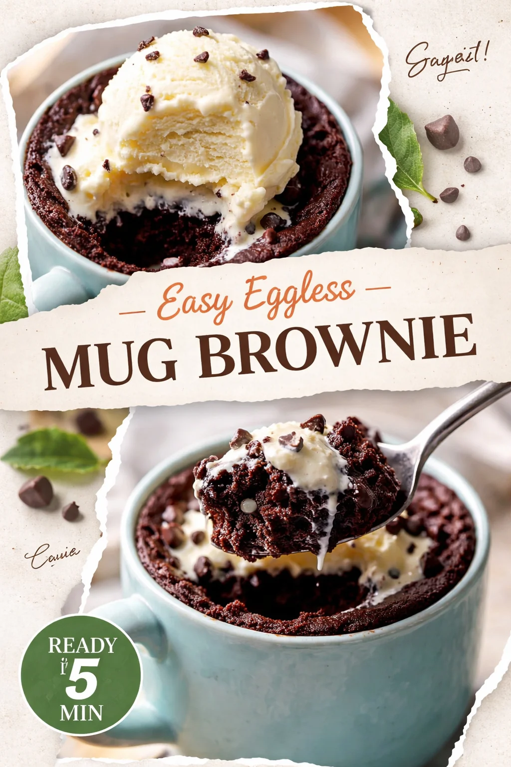 Serve this Easy Eggless Mug Brownie warm and slightly molten, spooned onto a small plate with a scoop of vanilla ice cream melting into the center. It is a perfect finish to a cozy dinner, a comforting late-night treat, and an indulgent dessert for a celebration at home. Pair it with a steaming mug of coffee or a spiced chai for an extra-comforting combination. For a shareable twist, make two mugs and set them side by side with spoons and a candle — instant mini celebration. And if your weeknight needs both comfort and a bright main, consider a lighter protein like my zesty easy air fryer lemon garlic salmon earlier in the meal for balance.