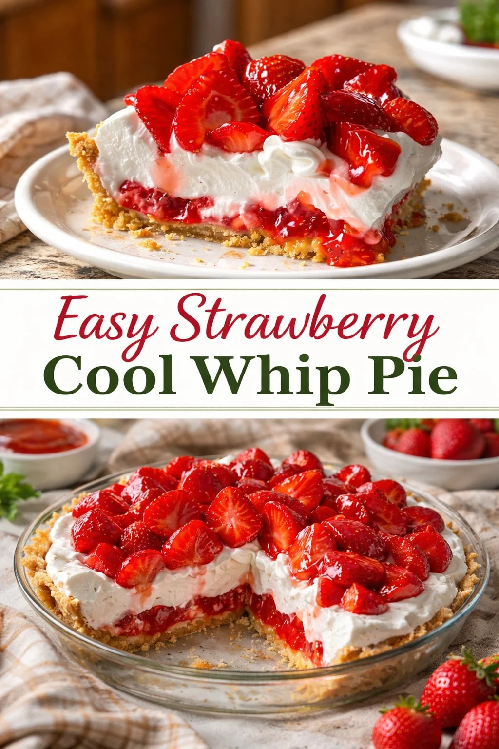 There is something magical about warm days when the sun shines brightly, and laughter fills the air. Family gatherings often evoke a sense of nostalgia for the simple pleasures in life. One delightful memory that will always be etched in my heart is the way my grandmother made her famous Easy Strawberry Cool Whip Pie every summer. This dessert wasn’t just a treat; it was a celebration—a joyful ending to sunny afternoons spent running around in the garden. The vibrant red strawberries against the fluffy white cool whip created a beautiful picture that always made my heart swell with happiness. Today, I want to share this cherished family recipe with you. Trust me, this Easy Strawberry Cool Whip Pie is not only simple to make; it will also bring smiles to your table and hearts.