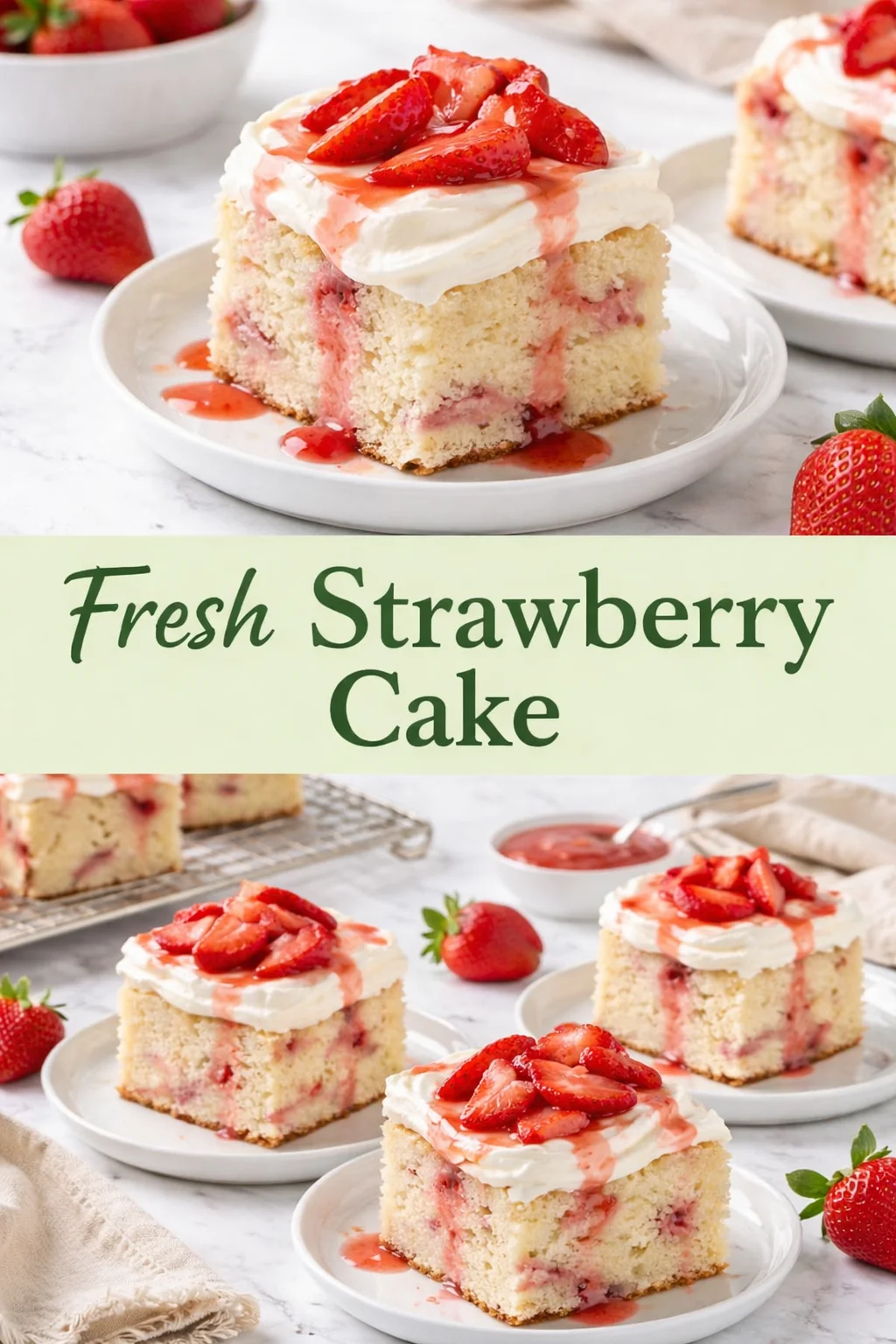 There is a moment each spring when the first baskets of ripe berries arrive at the market and my kitchen fills with that sweet, green-sugary scent — that is the birth of this Fresh Strawberry Cake. It’s the kind of dessert that makes you slow down, take a deep breath, and remember family picnics and birthday candles. This Fresh Strawberry Cake is an easy recipe that turns simple ingredients into an indulgent dessert that feels like a warm hug.