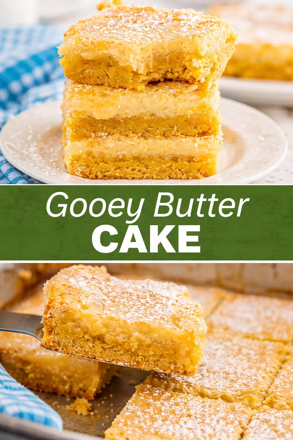 So pull out your pan, put on the kettle, and make a Gooey Butter Cake for the people you love. It’s a simple, indulgent, comforting dinner-table finale that doubles as a festive dish for celebrations and a cozy favorite on quiet nights. Share a slice, savor the moment, and let the buttery, sweet center remind you how small things can make days softer and gatherings brighter.