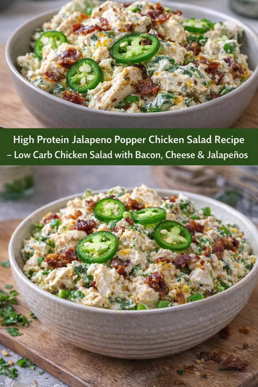 - 1 High Protein Jalapeno Popper Chicken Salad Recipe – Low Carb Chicken Salad with Bacon, Cheese & Jalapeños