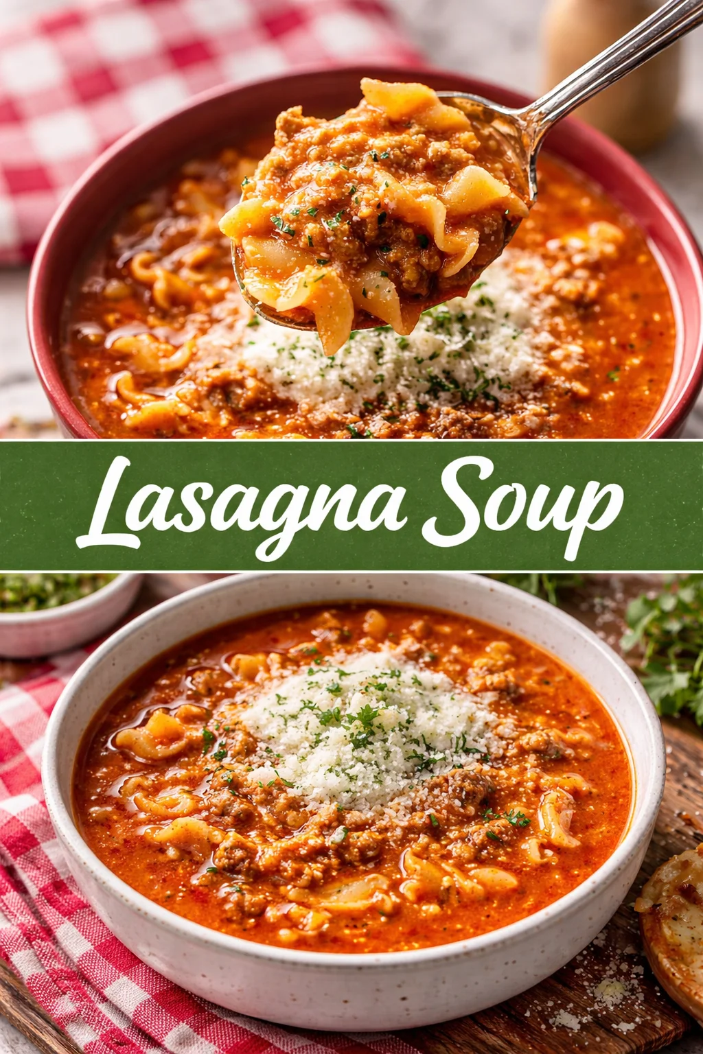 Imagine sitting down with a bowl of Lasagna Soup beside a fresh salad drizzled with balsamic vinaigrette and slices of warm garlic bread. For a drink, consider a glass of red wine or sparkling water with lemon. This complete meal is perfect for a cozy dinner with family, friends, or just a well-deserved night in.