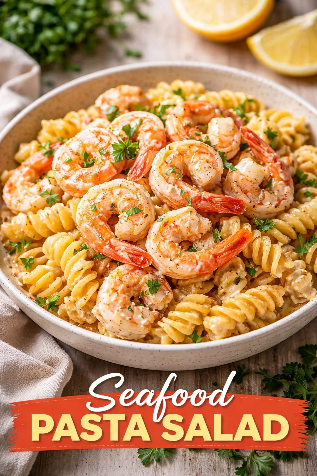 A refreshing seafood pasta salad featuring shrimp, crab, and a bright lemon-herb dressing, perfect for warm days and potlucks.