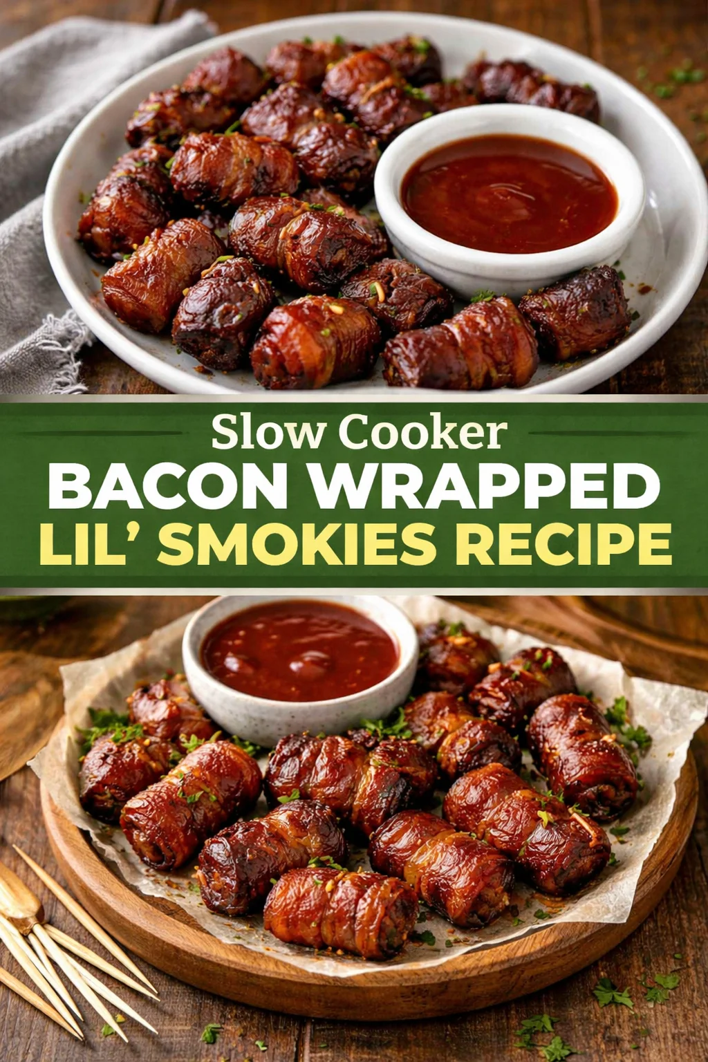This Slow Cooker Bacon Wrapped Lil’ Smokies Recipe – Dinner, then Dessert, is more than just a dish; it’s a beautiful blend of flavors that evokes warmth and togetherness. The laughter, the smiles, and the satisfying crunch will undoubtedly make this recipe a favorite at family gatherings. I encourage you to try it and let it become a cherished part of your mealtime traditions. Don’t forget to share your experiences! Happy cooking!