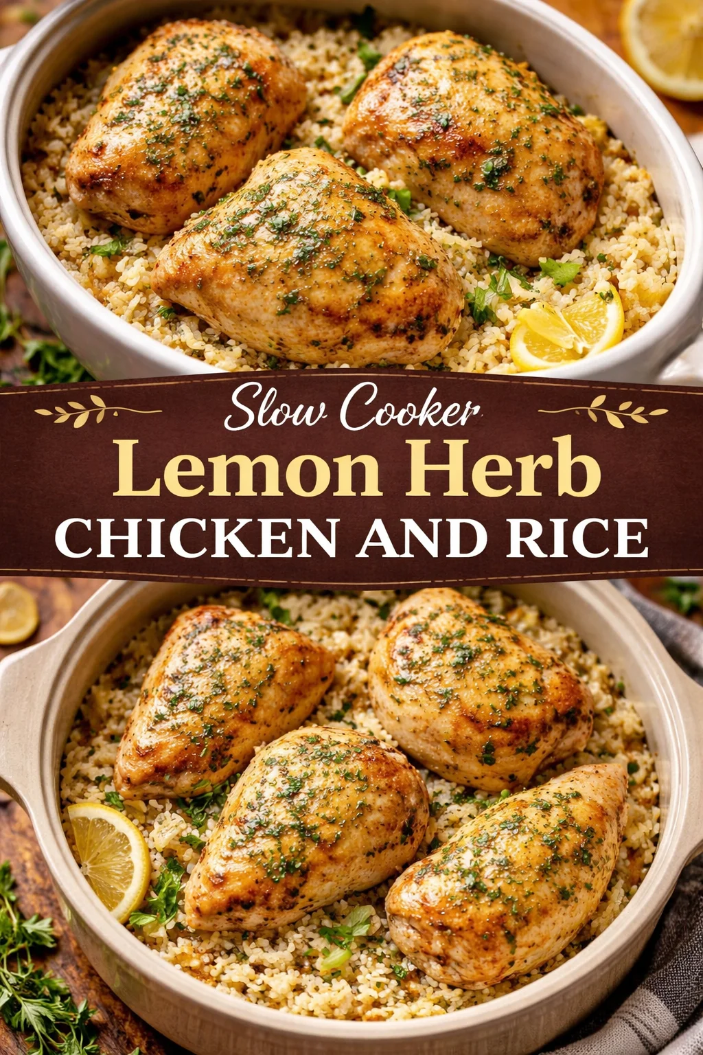 Slow Cooker Lemon Herb Chicken and Rice