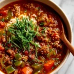 In a world full of complex meals and hurried schedules, the simplicity and warmth of Stuffed Pepper Soup are a reminder of what cooking is truly about—love, comfort, and togetherness. This recipe has the power to create laughter-filled evenings and heartfelt connections around the dinner table. So as you prepare this delightful dish, know that you’re not just making a meal; you’re crafting memories that will linger far beyond the last bite. I encourage you to try it, share it with loved ones, and make it a cherished part of your family traditions. Happy cooking!