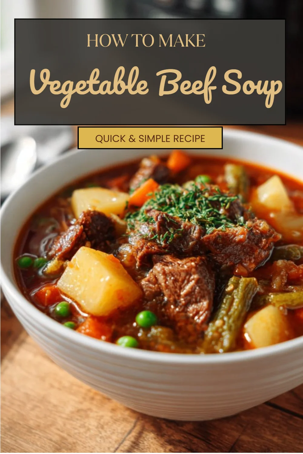 As you ladle that rich, hearty Vegetable Beef Soup into bowls, take a moment to savor not just the aroma but the memories it brings. This dish is a reminder of the warmth and comfort found in shared meals and laughter. I hope you’ll make this easy recipe part of your family’s traditions, creating stories that will be cherished for years to come. So set your stove, gather your loved ones, and allow the simple pleasures of food to nurture your spirits. Enjoy every delicious spoonful!